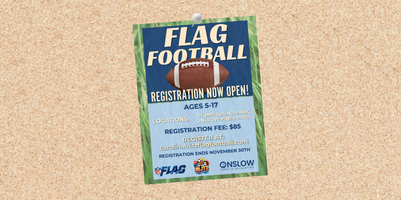 Winter Flag Football registration Closes November 30th. Visit Carolinablitzflagfootball.com for more information and to register.